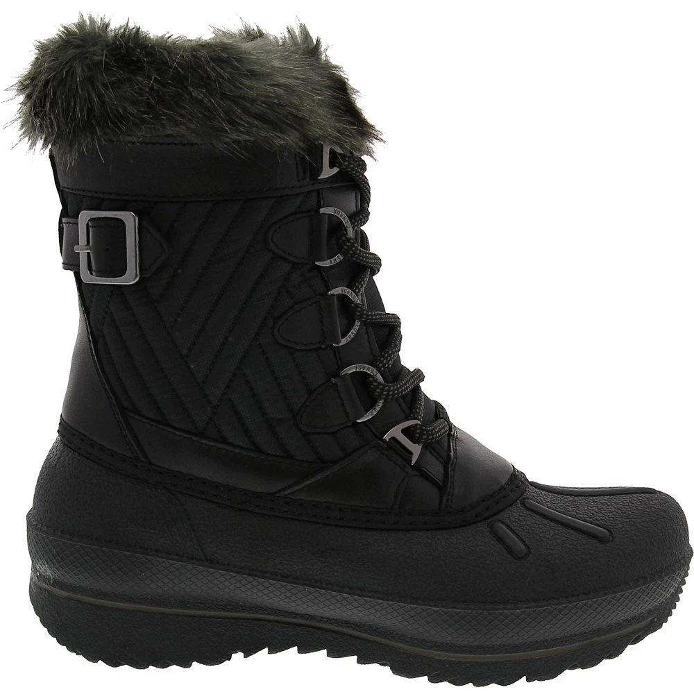 Absolute Canada Leah Comfort Winter Boots – Womens. Stay comfortably warm without sacrificing looks with these fashionable womens winter boots. The perfect choice for snowy days, the Absolute Canada Leah Comfort Winter Boots are designed with a natural rubber sole for durability and traction on slippery surfaces. The faux leather upper and faux fur lining add wintry flair while keeping you warm and cozy.