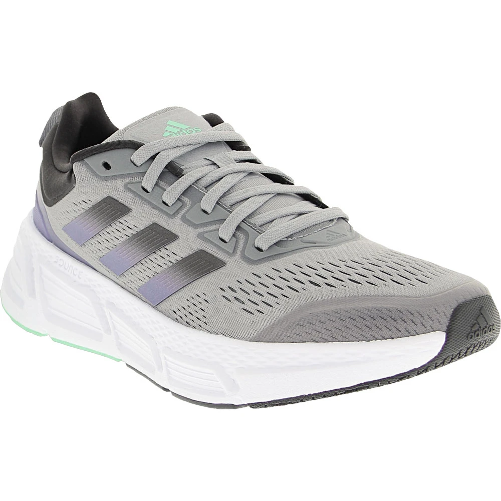 Treat your feet to the plush comfort of Adidas Questar womens running shoes. Designed for daily running, the Questar incorporates a springy midsole with Bounce EVA foam for responsiveness and elasticity. Breathable textile and synthetic uppers contain a minimum of 50% recycled content, but they also keep your feet cooler and drier with every stride. Synthetic outsoles with molded heel counters offer traction and stability. Rear pull tabs make on and off a cinch.
