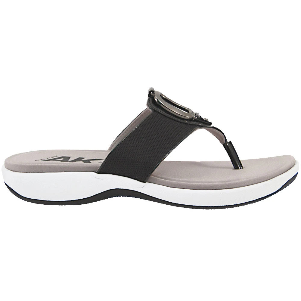 Anne Klein Quartet Women’s Sandals. Jazz it up on those warm-weather days with a pair of cute and comfortable women’s sandals. The Quartet thong sandal by Anne Klein comes with a soft fabric upper and chic metallic decoration at the vamp. Soft textile lining and lightly-padded footbed provide extra comfort and the lightweight synthetic outsole allows for easy maneuverability and traction. ¾ inch platforms minimize instability while boosting the effect of 1¼” heels.