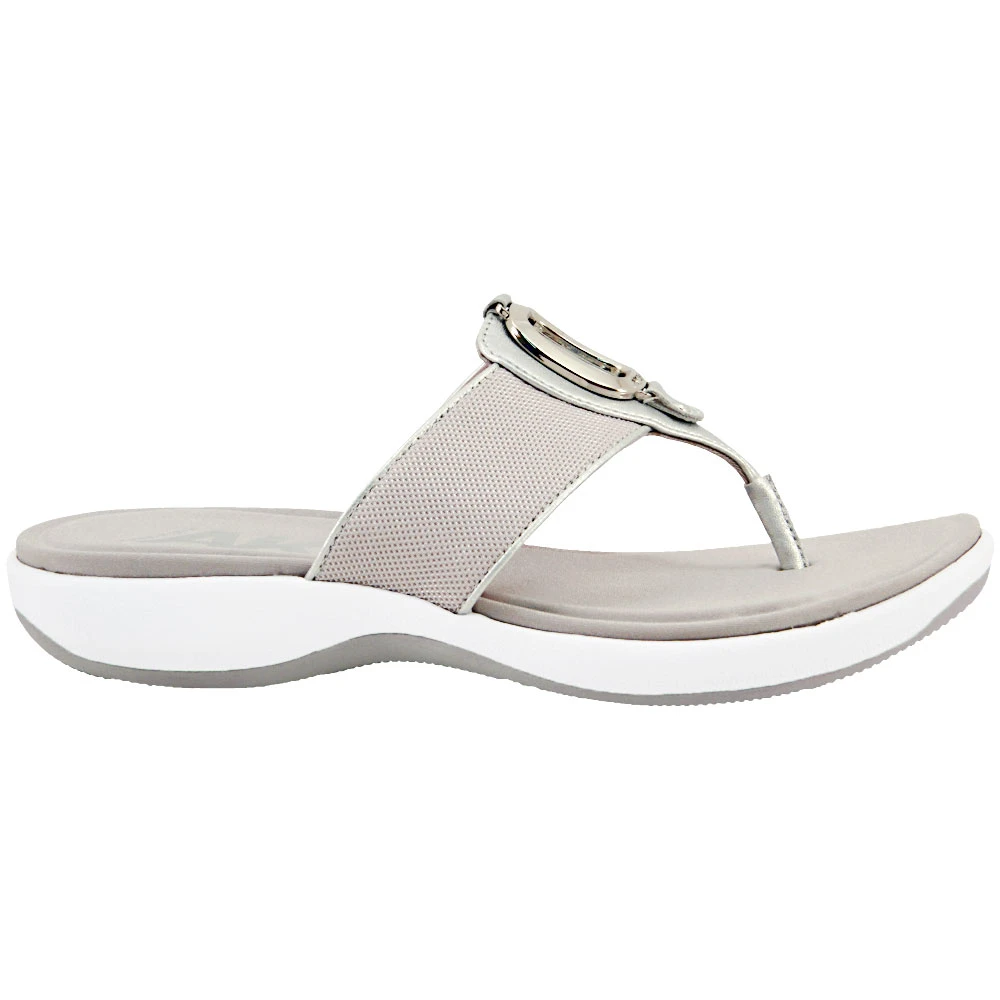 Anne Klein Quartet Women’s Sandals. Jazz it up on those warm-weather days with a pair of cute and comfortable women’s sandals. The Quartet thong sandal by Anne Klein comes with a soft fabric upper and chic metallic decoration at the vamp. Soft textile lining and lightly-padded footbed provide extra comfort and the lightweight synthetic outsole allows for easy maneuverability and traction. ¾ inch platforms minimize instability while boosting the effect of 1¼” heels.