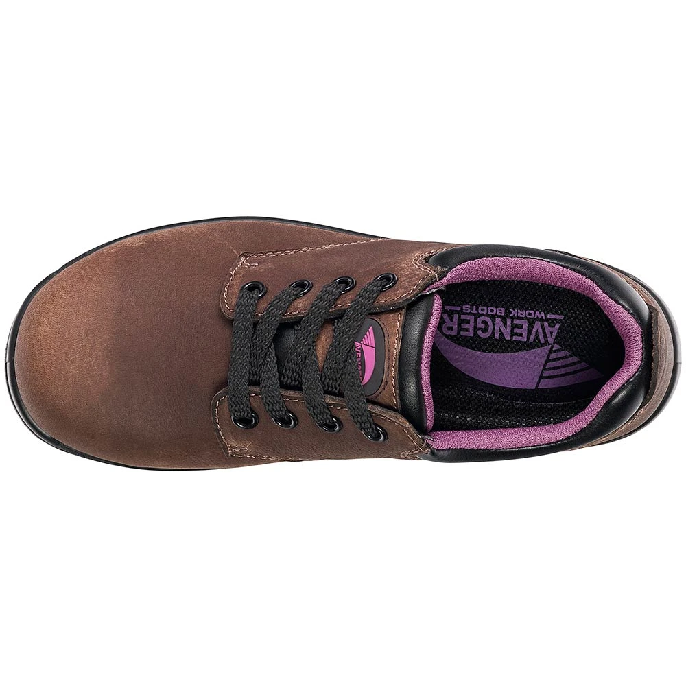 Avenger Work Boots 7164 Women’s Steel Toe Work Shoes. Achieve an ideal combination of support and on-the-job protection when you lace up Avenger’s capable Steel Toe Women’s Work Shoe. Its full-grain leather construction and directly attached PU outsole are tough enough to stand up to your work area every day. A supportive nylon shank works alongside the waterproof membrane to ensure dry, well supported feet, and a double-dense insole provides extra bounce for resilience from start to finish.