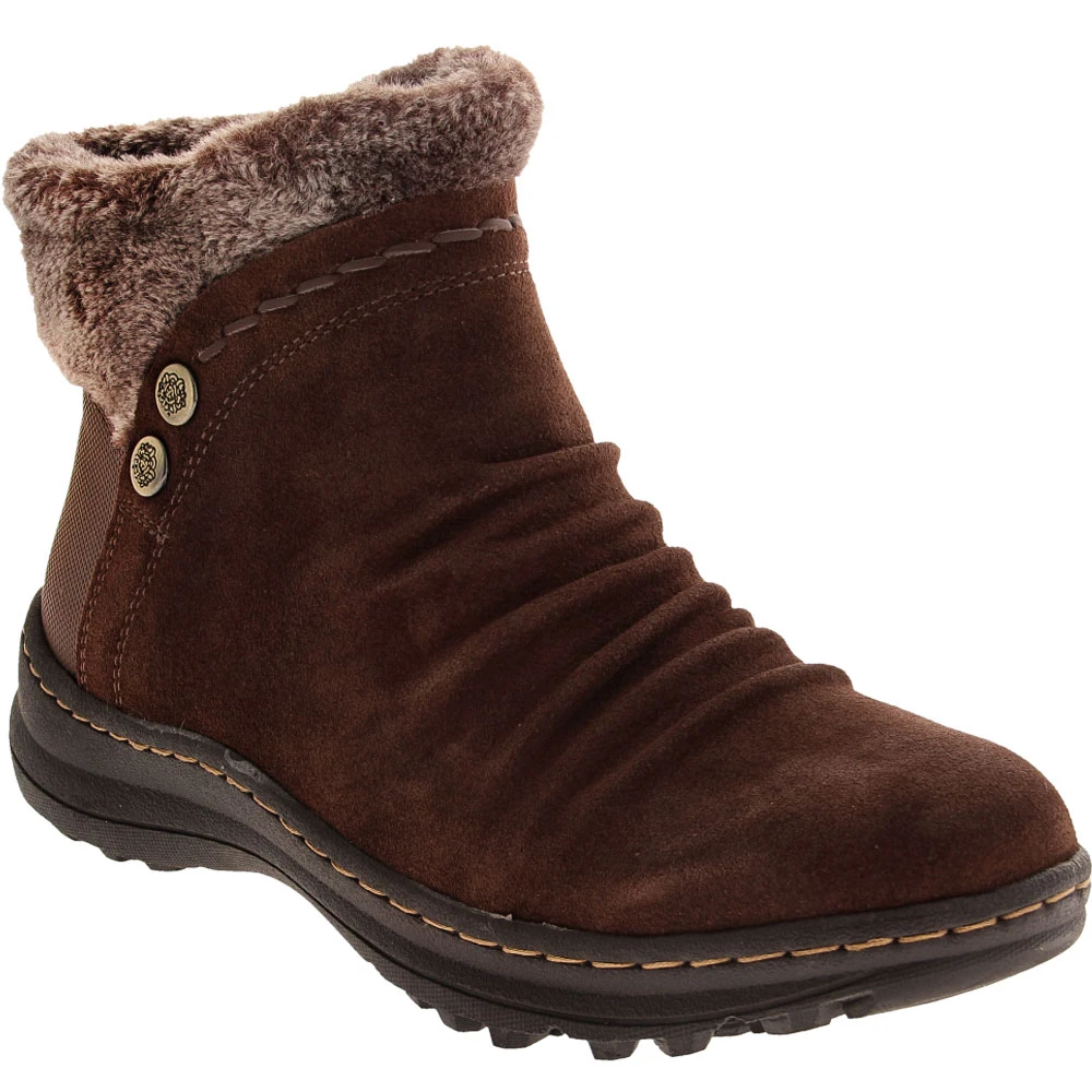 BareTraps Alick Comfort Winter Boots – Womens. The Alick from BareTraps is a stylish way to stay warm and cozy throughout the winter season. With a faux shearling lining and button details, these womens winter boots are as cute as they are comfortable. They repel water while remaining breathable, so your feet stay dry in any weather. The outsole is slip-resistant and keeps you steady on your feet. You can be ready to go in no time with an inside zipper that allows for easy on and off.