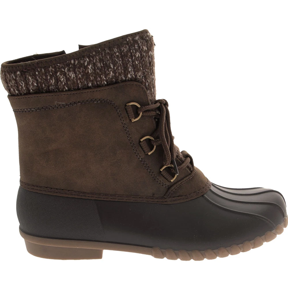 BareTraps Fawkes Comfort Winter Boots – Womens. Cold weather doesn’t have to keep you inside when you have the Fawkes from BareTraps. These womens winter boots will keep your feet warm and cozy whether you’re outside building a snowman or running a few errands. The water-repellent upper keeps you dry while remaining breathable, and the outsole provides flexible traction. The inside zipper lets you slide them on and off quickly. D-ring lacing ensures a great fit. The sweater cuff detail adds a stylish touch.