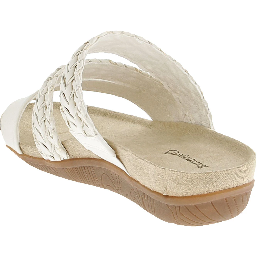 If you are tired of slides that lack sophistication, give your summer fashion extra charm with these womens sandals. While still easy to wear, they have a manmade upper with two weaved straps, one smooth strap and a toe loop that make them stand out in the crowd. As you enjoy summer fun, your feet get to enjoy the latest in comfort technologies. These sandals have a cushioned and contoured footbed with built-in arch and heel support.