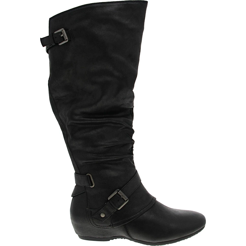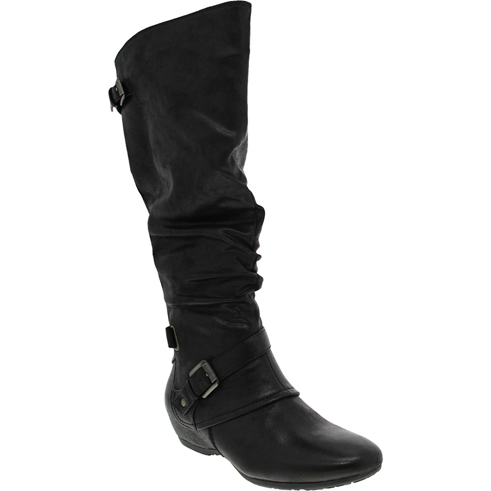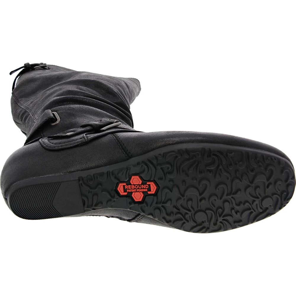 BareTraps Patricia Womens Tall Dress Boots. Look and feel amazing in the Patricia, a stylish and comfy tall boot featuring the patented comfort features of Baretraps Rebound Technology! The decorative strap detail and rouching are perfectly on-trend for days you want to look great but need a boot that’s up for all day wear.
