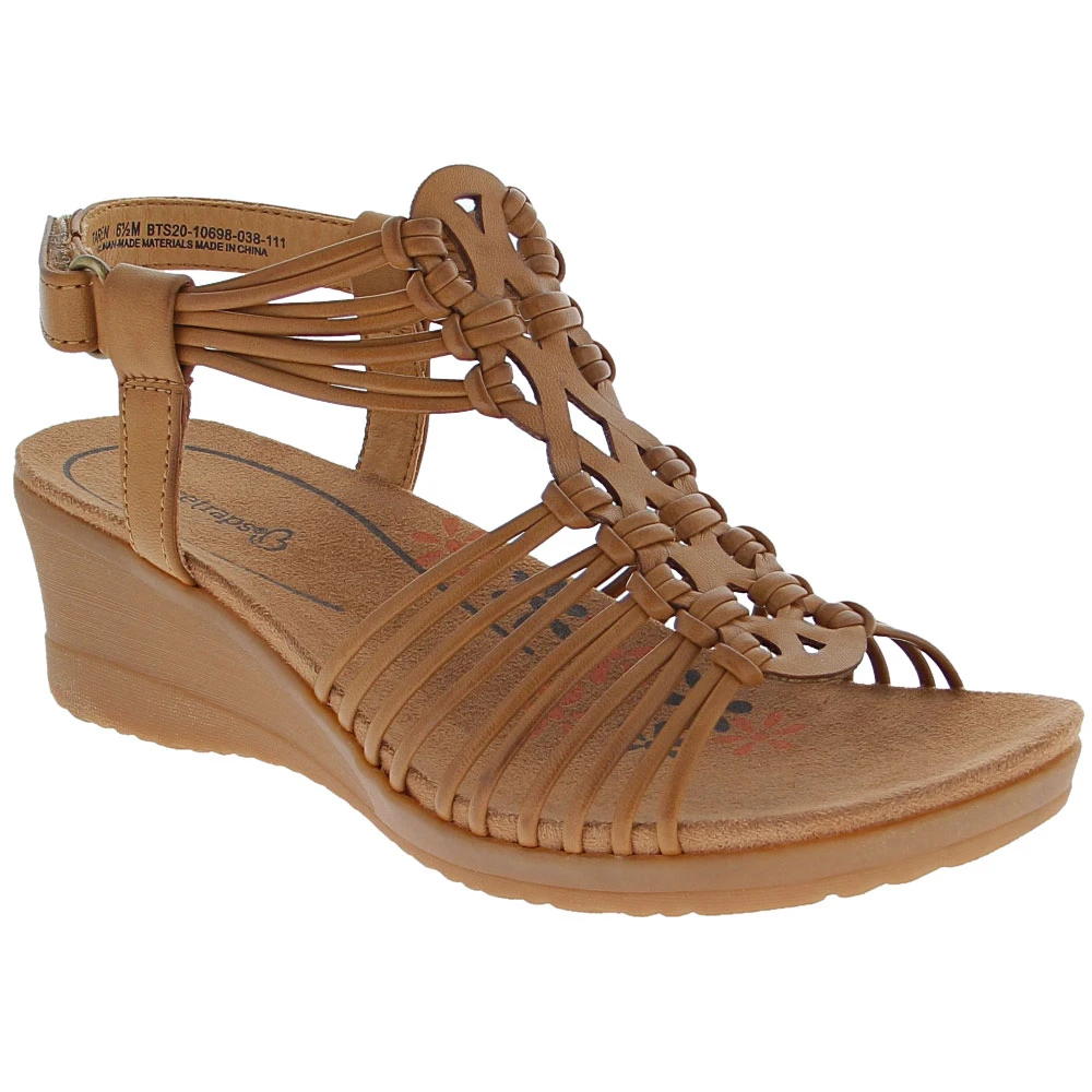 BareTraps Taren Sandals – Womens. The fashionable BareTraps Taren sandals will easily makes any look more stylish. With a wedge heel, thin straps and laser-cut details, these womens sandals will have you looking as good as you feel. The insole cushions your feet while the molded footbed provides support. The outsole gives traction to keep you steady. They have a slip-on design for easy on and off and a hook and loop closure that adjusts to give you the perfect fit.