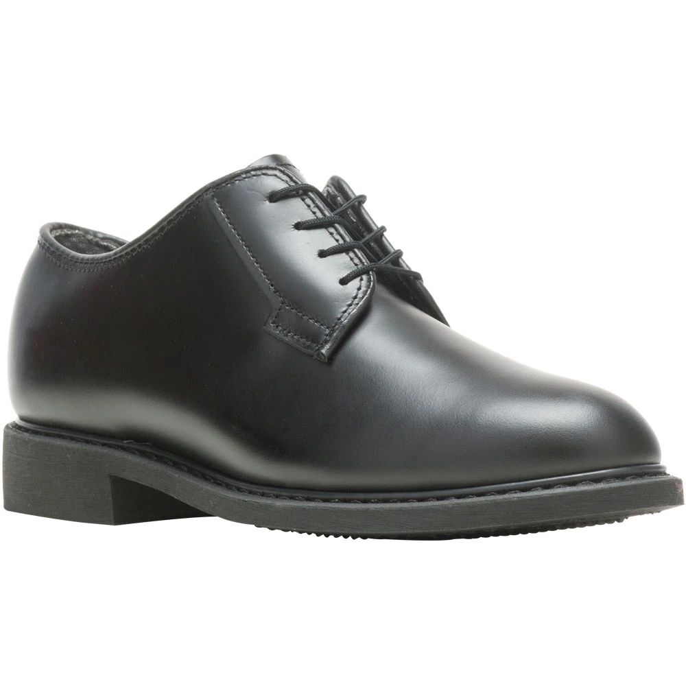 Bates Uniform Ox Leather Non-Safety Toe Work Shoes – Womens. On your feet and in uniform all day? Bates Uniform Oxford shoes are just what you need. Bates has years of experience in crafting womens uniform work shoes, and that experience shows in the quality and comfort you get with this oxford. The black leather upper is easily polished, ensuring that you are always uniform compliant. The Vibram rubber outsole offers ample support and cushioning from impacts on hard surfaces.
