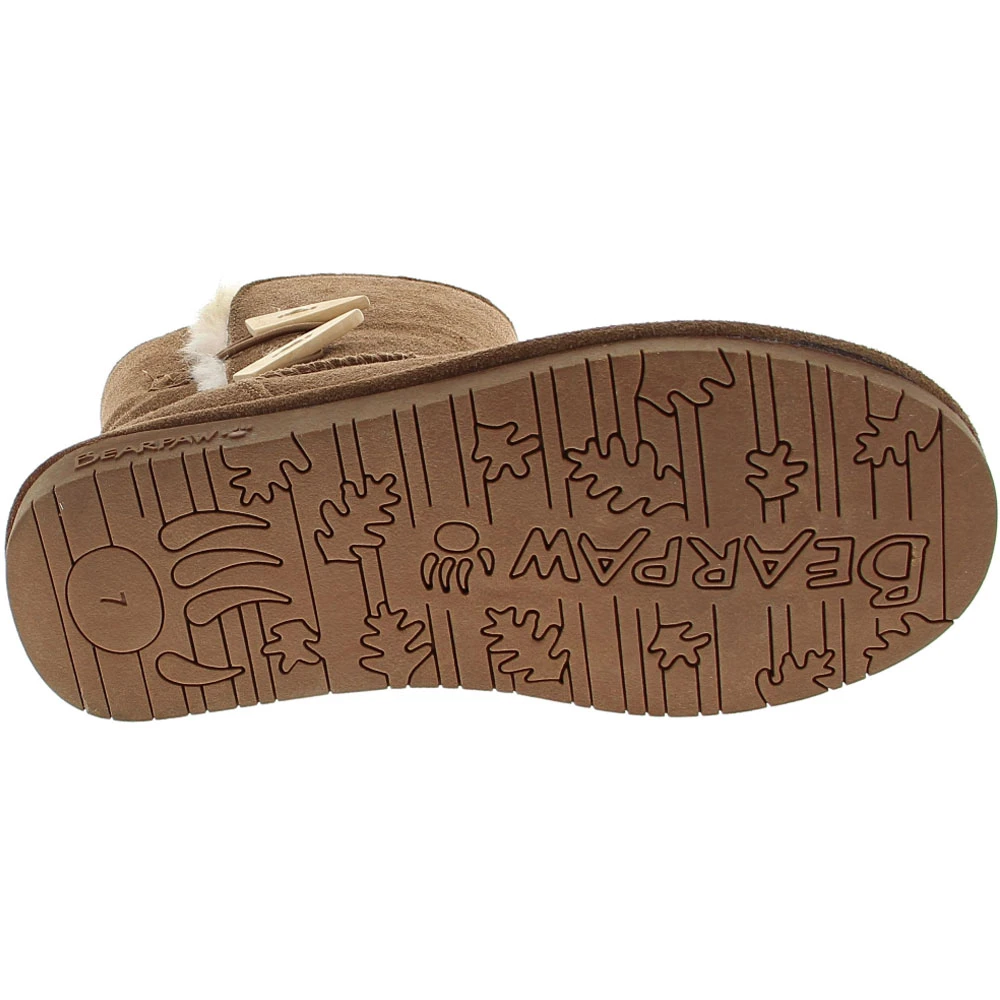 Bearpaw Abigail Women’s Winter Boots. Warm up to a cute cold weather look with the Bearpaw Abigail. This winter boot is made with a cow suede upper. Inner soles are made from sheepskin wool. Stylish closure at the shank and a stable plastic sole for extra grip. Heel height 1 inch. Shaft height 8 inches.