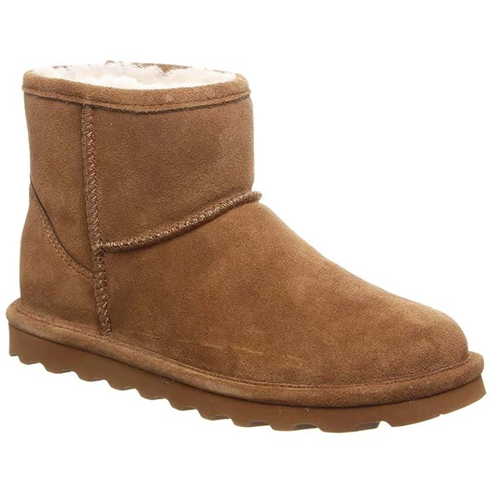 Bearpaw Alyssa Comfort Winter Boots – Womens. Cold weather woes are a thing of the past in these cozy water-resistant womens winter boots. These 5-inch booties make walking through the snow stylish and comfortable, as well complement comfy pajamas for cold nights spent indoors. Crafted with a unique NeverWet technology, these pull-on boots keep feet dry and comfortable. They feature a footbed and interior lined with warm sheepskin, as well as a durable outsole designed to keep moisture out and slippage to a minimum.