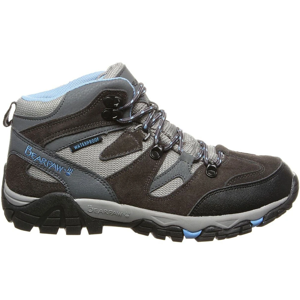 Bearpaw Corsica Women’s Hiking Boots. Tired of every adventure being rained out? Bearpaw’s Corsica women’s hiking boots can save your next outdoor excursion. These waterproof ankle boots have a feminine full bootie construction with colorful pink or blue detailing to match and are made with durable nylon, suede and rubber to help them last for a long time to come – no matter where your next hikes take you.