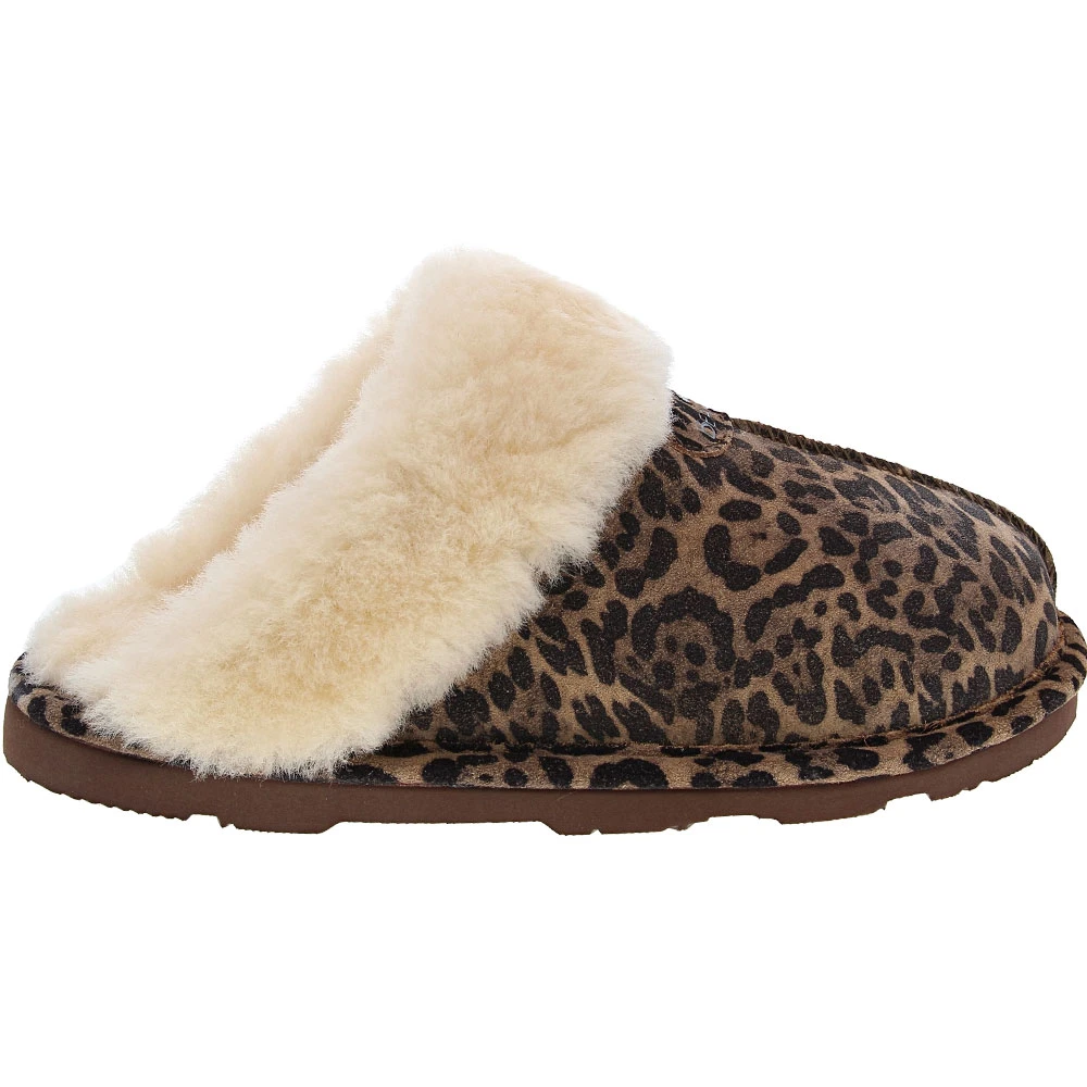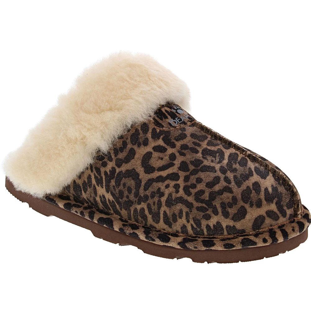 Bearpaw Loki Exotic Womens Slippers. These cozy women’s slippers feature soft suede uppers with a sheepskin collar that is easy to maintain and offers the great comfort. The sheepskin lining regulates body temperature to keep your feet warm, and the sheepskin footbed provides additional softness and reduces foot fatigue. The durable outsole makes the BEARPAW® women’s Loki slipper the perfect indoor/outdoor wear.