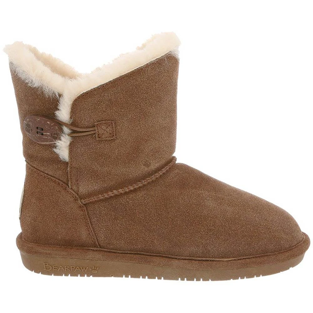 Bearpaw Rosie Women’s Winter Comfort Boots. Snuggle down into these Bearpaw Rosie women’s winter boots to keep your feet warm this season. These cute boots have a cow-suede upper and cozy sheepskin footbed. Once you put them on, you won’t want to take them off! The closure is a single toggle, making them easy to slide on so you’re on your way out the door. From comfort to style, the Rosie has it all.