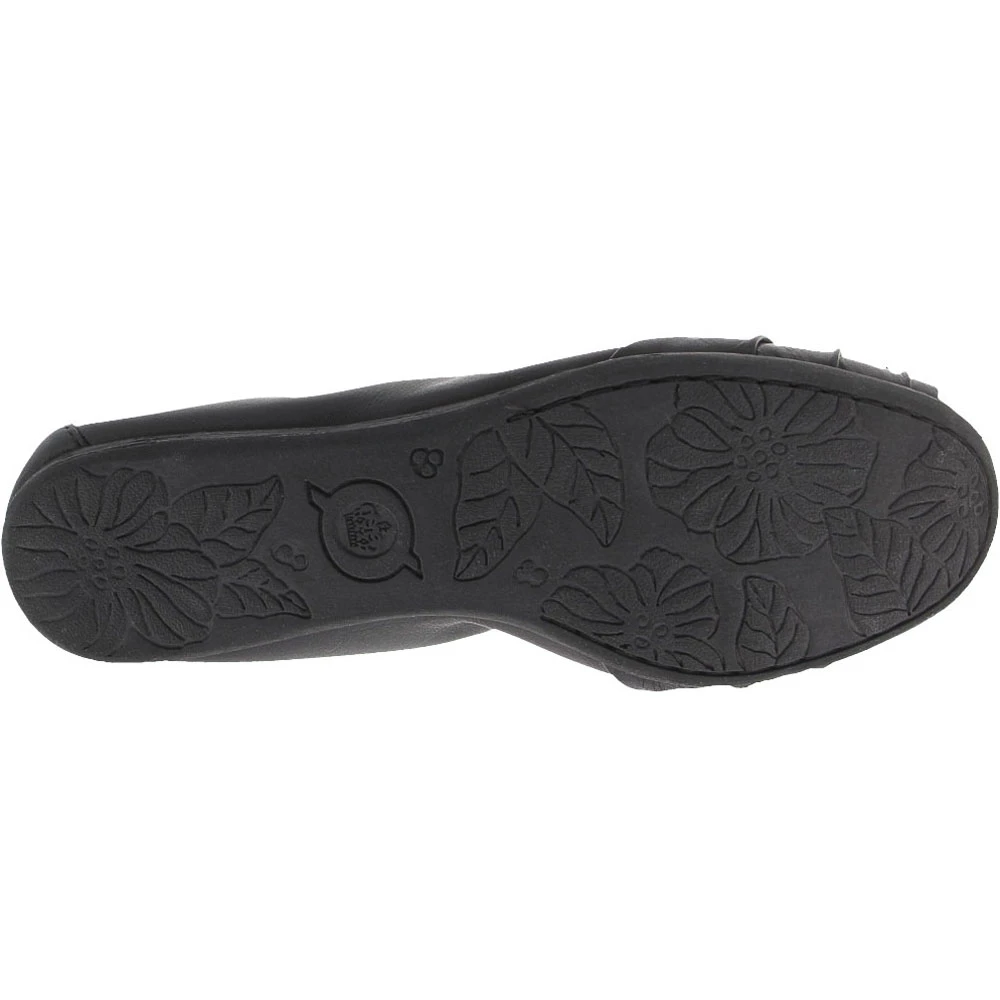 Born Chelan Slip On Women’s Casual Shoes. The Born Chelan is a classic ballet flat made with the highest quality full-grain leather stitched together using an Opanka handcrafted construction for optimal durability and flexibility while you walk. These womens casual shoes feature a natural tan colored exterior with a delicate bow decorating the toes. A cushioned insole provides extra comfort while the rubber outsole helps keep you safely on your feet.