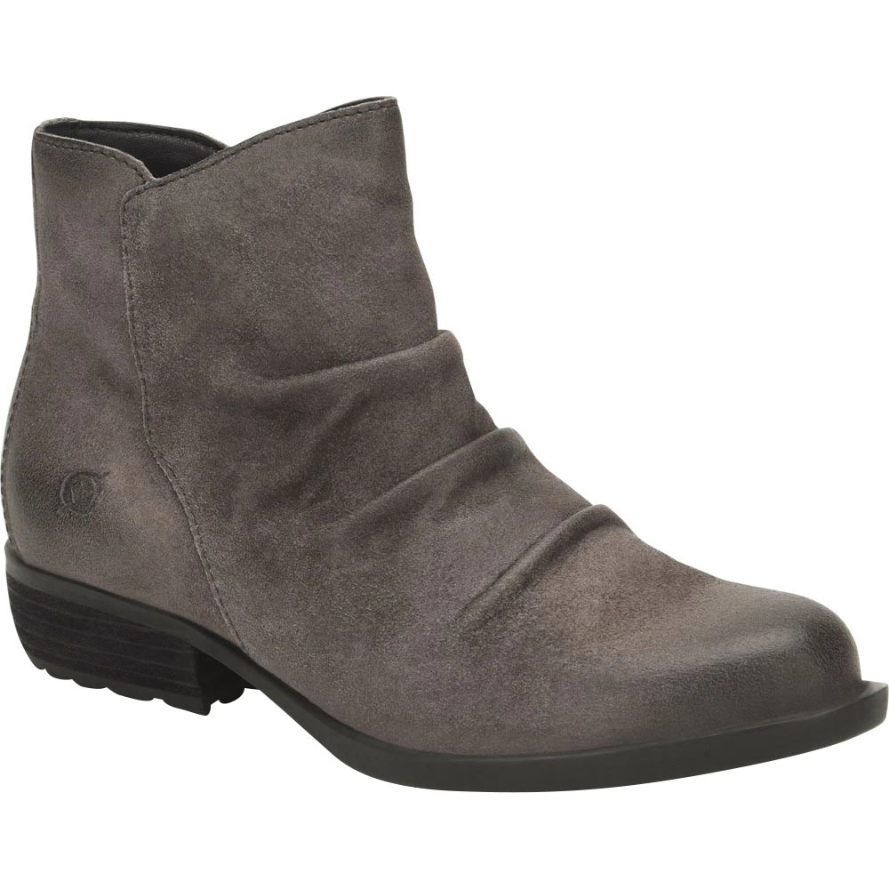 Born Falco Ankle Boots – Womens. Comfort and style come together in these womens ankle boots. With breathable soft fabric lining and covered foam footbeds, the Born Falco Booties feel great on your feet all weekend long. With ruched styling and hand-finished suede leather uppers, these gorgeous boots add a little pizazz to any outfit and are sure to become a closet staple.