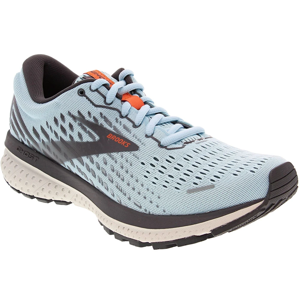 Brooks Ghost 13 Running Shoes – Womens. Get a smoother transition and superior cushioning with the modern design of these Brooks womens running shoes. The secret lies in the extended DNA LOFT, which now stretches from the heel to the forefoot for seamless movement through each stride. That same technology provides luxurious cushioning to reduce strain on your feet. The engineered mesh upper features strategic areas of structure and stretch to give you flexible, breathable comfort and a secure fit.
