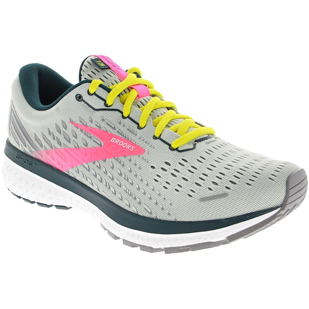 Brooks Ghost 13 Running Shoes – Womens. Get a smoother transition and superior cushioning with the modern design of these Brooks womens running shoes. The secret lies in the extended DNA LOFT, which now stretches from the heel to the forefoot for seamless movement through each stride. That same technology provides luxurious cushioning to reduce strain on your feet. The engineered mesh upper features strategic areas of structure and stretch to give you flexible, breathable comfort and a secure fit.