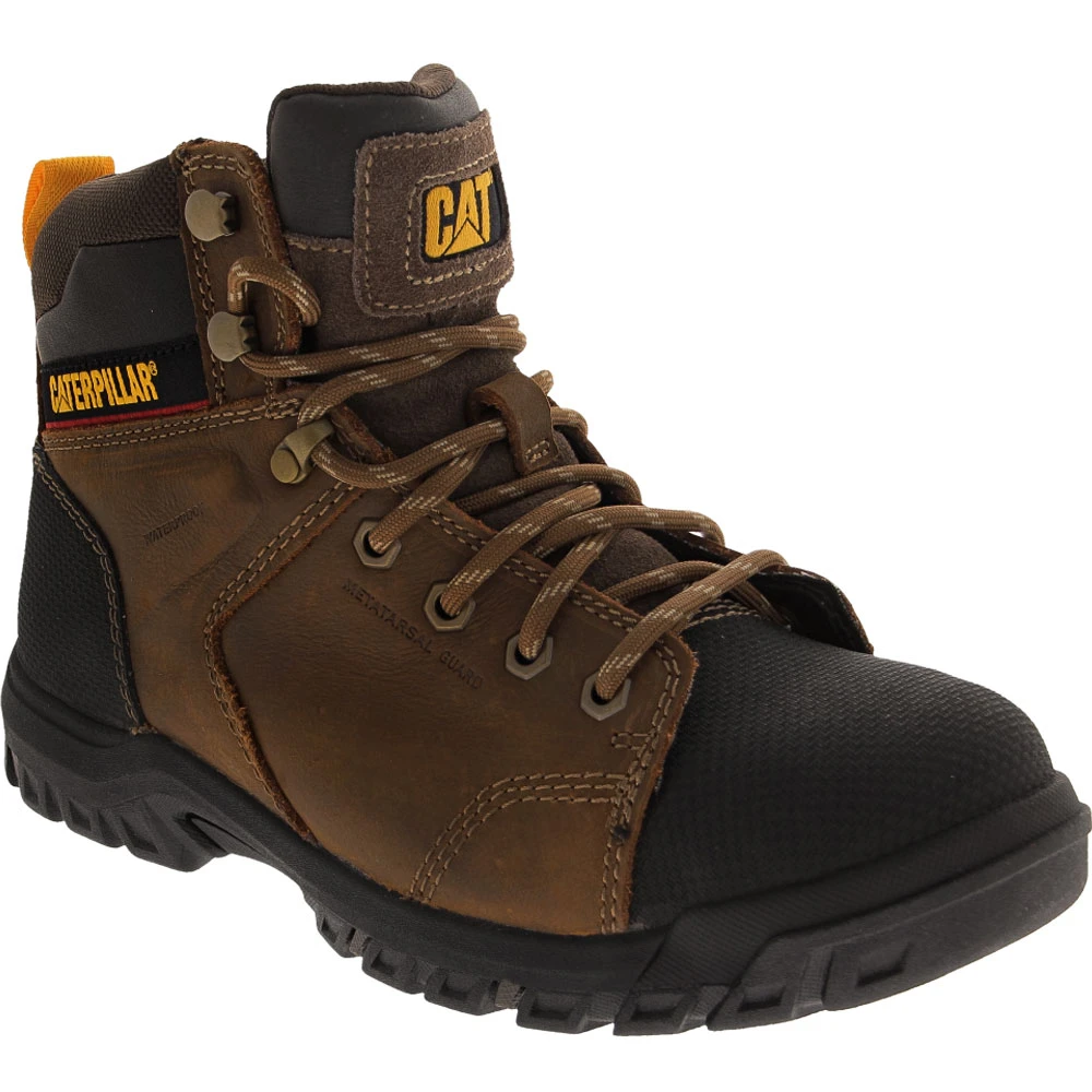 Caterpillar Footwear Wellspring Met Safety Toe Work Boots – Womens. For tailored support and trusted protection, it is tough to top the Wellspring Womens Work Boot by Caterpillar. Its work-ready construction starts with a waterproof leather upper, a durable body that features an integrated metatarsal guard for defense against falling items. Additionally, this boot is shaped specifically for a woman’s foot, and includes a nylon support shank along with a steel toe for optimal protective capability.