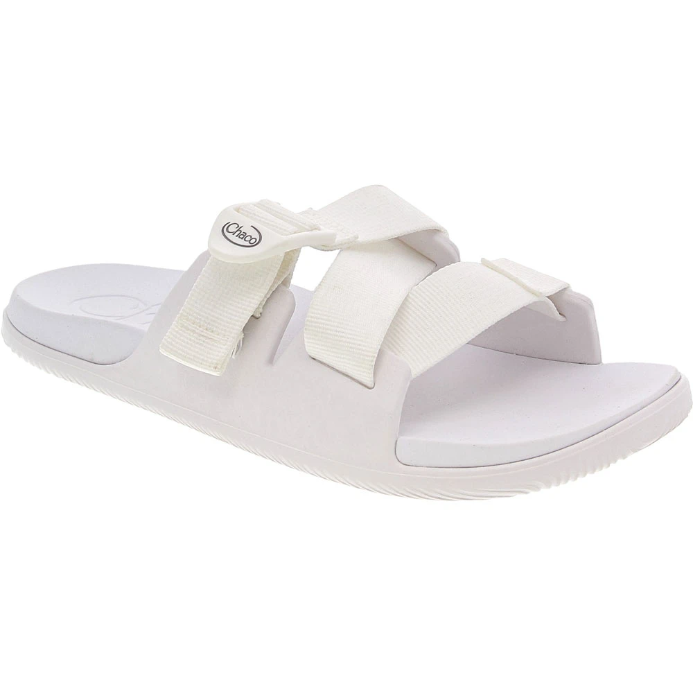 Chaco Chillos Slide Water Sandals – Womens. Stable, warm-weather footwear doesn’t have to be boring. These womens outdoor sandals take slides to the next level of style while retaining the lightweight durability and support needed for an active lifestyle. The upper is a crisscrossed polyester strap that can be adjusted for the perfect fit. Once on the move, the flexible midsole and contoured footbed cushion and stabilize every step. Whether rain or shine, the rubber outsole provides needed traction.