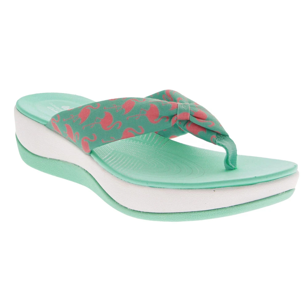 Clarks Arla Gilson Women’s Flip Flop Sandals. Detailed with a soft knotted design and a platform wedge heel, the Clarks Arla Gilson Flip Flopswill upgrade your sandal collection. This sandal not only was constructed for maximum support, but comfort as well. With its cushion footbed and easy slip-on thong opening, the Arla Gilson is sure to please.