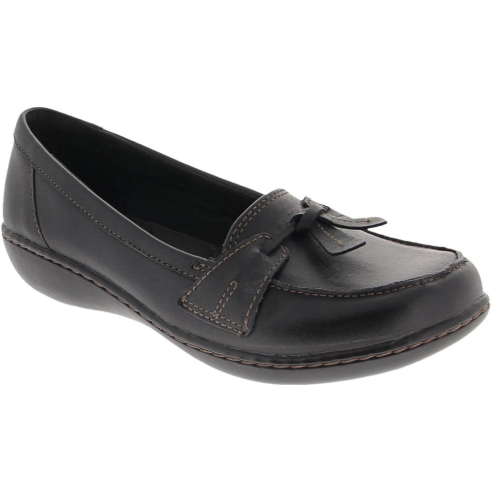 Clarks Ashland Bubble Slip on Casual Shoes – Womens. Clarks’ Ashland Bubble womens casual shoes offer classic comfort wherever you go. Designed for women who want to stay stylish while meeting the demands of their on-the-go lives, these Ashland Bubble slip-ons are made with super soft leather and flexible construction to move with your foot instead of against it. The tassel loafer style of these shoes can also look great with any outfit you wear, day or night.