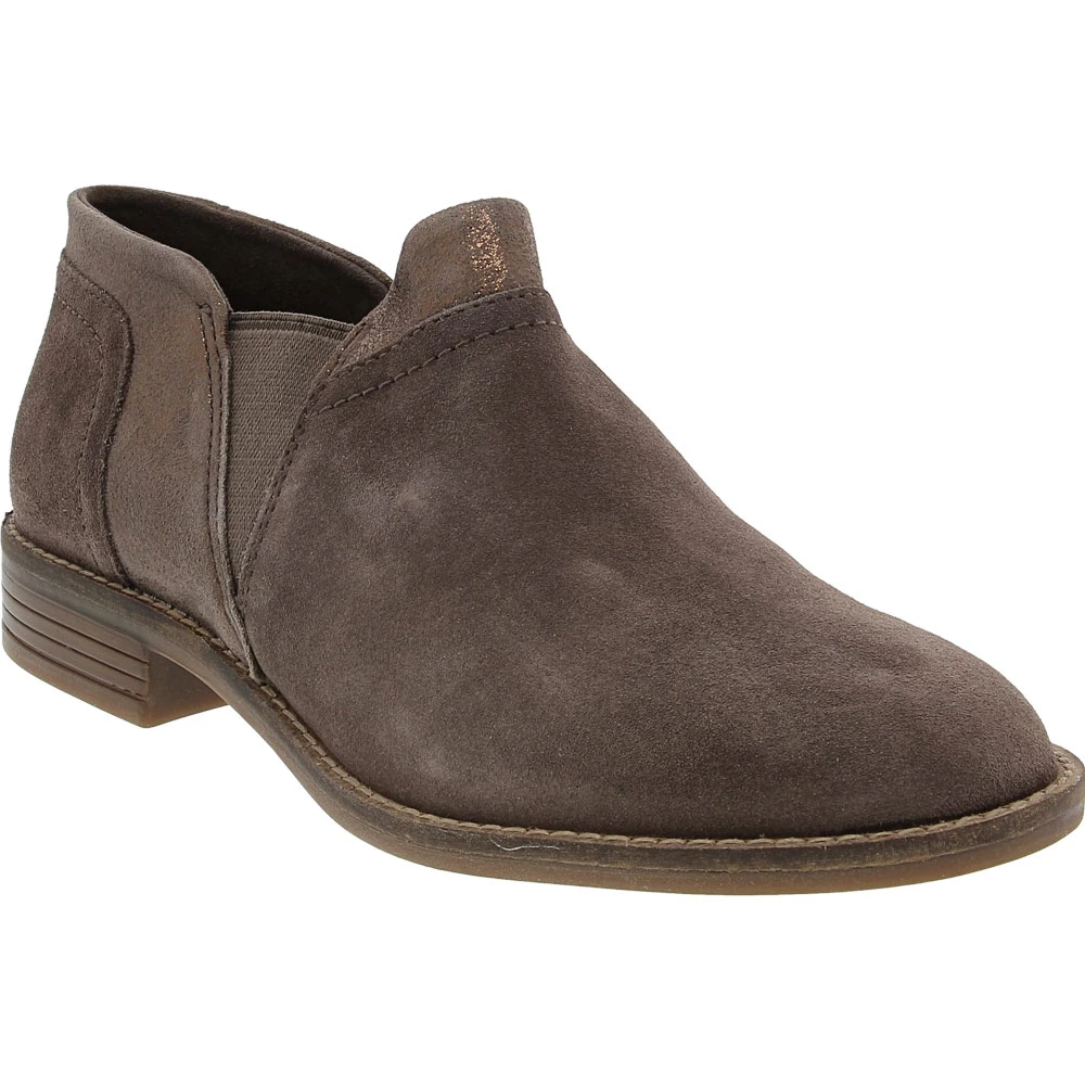 Clarks Camzin Mix Slip on Casual Shoes – Womens. These Western-inspired womens slip on casual shoes add style and flair to a range of ensembles. Designed for easy, comfortable wear, they have a sleek leather upper with stitching accents and elastic side gore panels for flexible wear. Feet are kept cushioned and comfortable thanks to a memory foam insole and moisture-wicking, antifungal lining. A subtle heel adds a touch of height while the durable outsole is designed for providing traction.