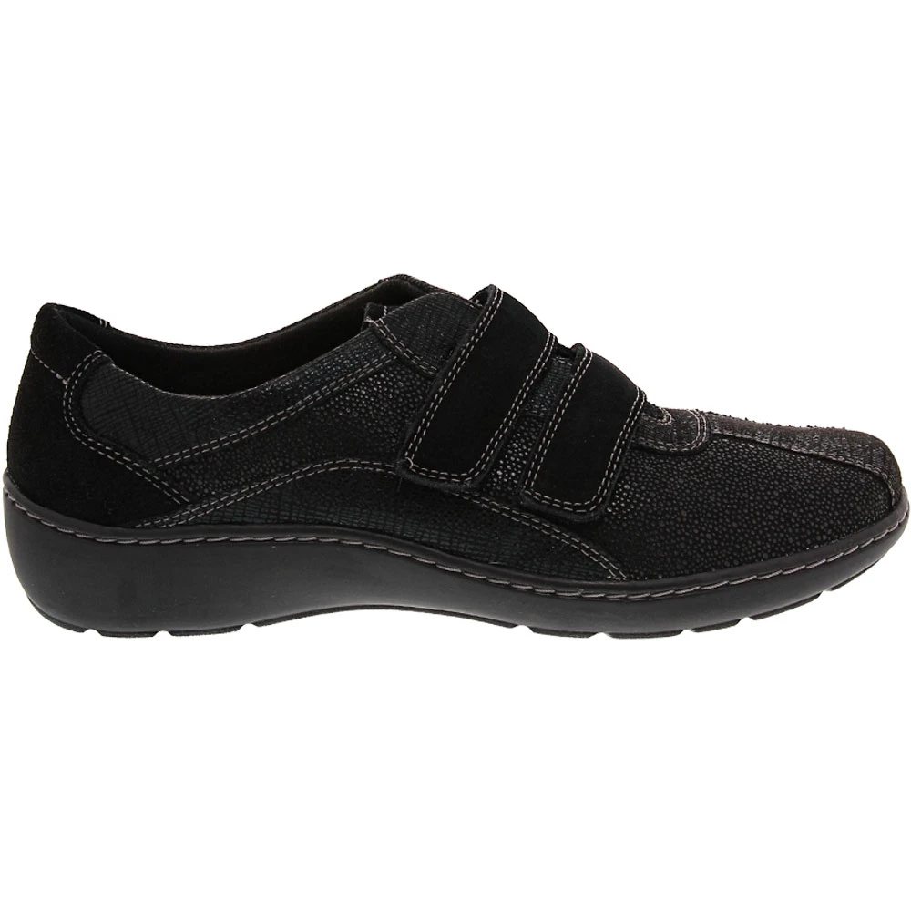 Clarks Cora Azalia Slip on Casual Shoes – Womens. Get the sporty style you love with a stylish flair wearing these womens slip on casual shoes. They have a leather and suede upper with subtle stitching and cutout accents that add to their charm. Easy to slip on, they have two adjustable straps across the forefoot for a custom fit. Designed for optimal comfort and support, they have a multi-density, shock-absorbing memory foam footbed and durable outsole that provides traction and stabilizes steps.