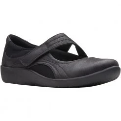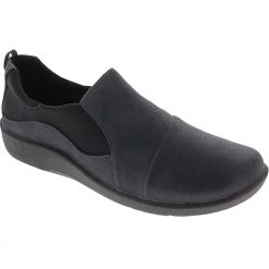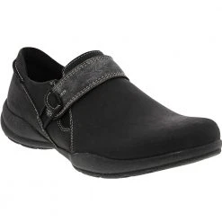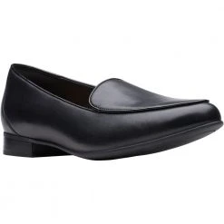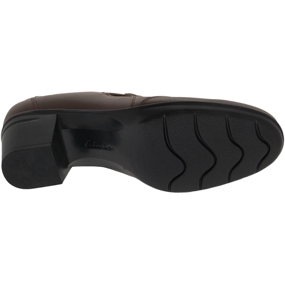 Clarks Emslie Warren Women’s Casual Dress Shoes. Make a distinct impression at the next office meeting or day out with a slip-on loafer. Strap fastenings hook onto embellished buttons for a bit of visual flair on otherwise smooth leather women’s casual shoes. Discreet elastic makes slipping into these comfortable shoes all the easier. The 2” chunky heel gives added lift without the discomfort of thinner heels. The Ortholite footbed and Cushion soft foam inlays minimally compress feet while providing maximum comfort.