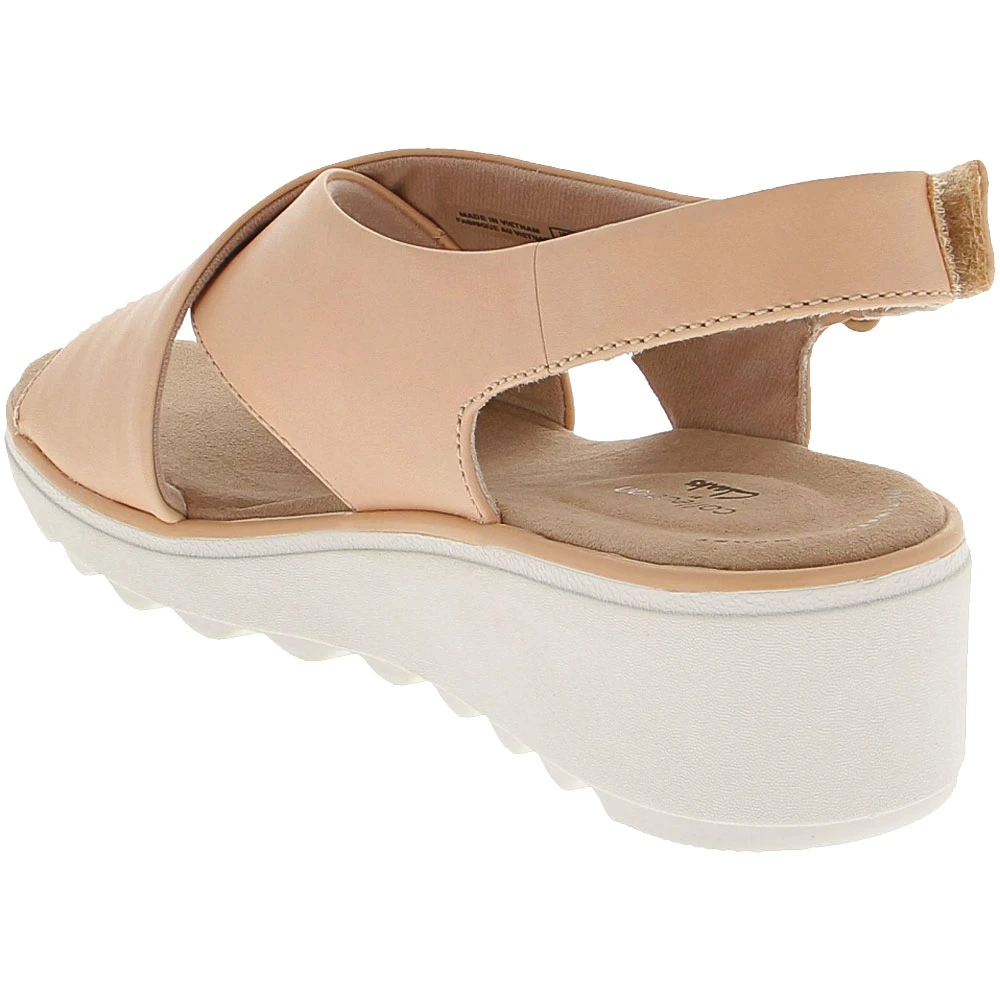 Clarks Jillian Sandals – Womens. Keep a spring in your step all summer long with these comfortable womens sandals. The leather upper features wide crisscross straps and an adjustable hook-and-loop closure around the heel. The Cushion Soft footbed and Ortholite foam inlay provide exceptional comfort for a busy day out on the town. Sturdy EVA outsoles provide traction and support while enhancing the sporty look of these sandals. Pair this versatile footwear with your favorite summer outfits.