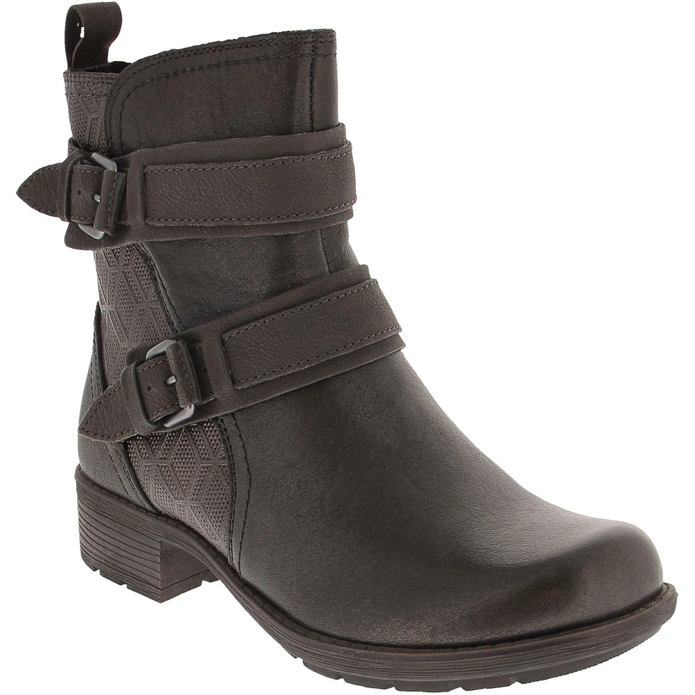 Cobb Hill Collection Alessia Strap Ankle Boots – Womens. Contemporary with just a bit of edge, the Cobb Hill Collection Alessia from Cobb Hill is the perfect shoe for casual occasions, whether that’s running errands or going out with the girls. The footbed of these womens ankle boots is lightweight and flexible to keep you comfortable while absorbing impact to reduce fatigue. The leather upper is durable and breathable, so your feet stay cool. A steel shank provides added stability while the rubber outsole provides traction to keep you steady on your feet.
