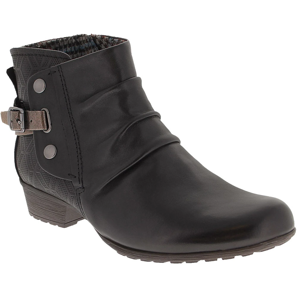 Cobb Hill Collection Gratasha Hardware Bt Ankle Boots – Womens. Ditch boring womens ankle boots and let your wild side out. These stylish boots are designed for the modern woman ready for some fun. They feature ruching in front, which add a little texture, and a buckle that wraps around the ankle. The art-inspired sides have laser-cut designs that add to the fun. Along with being a complementary addition to any outfit, feet stay comfortable and supported thanks to a cushioned midsole and stabilizing design.
