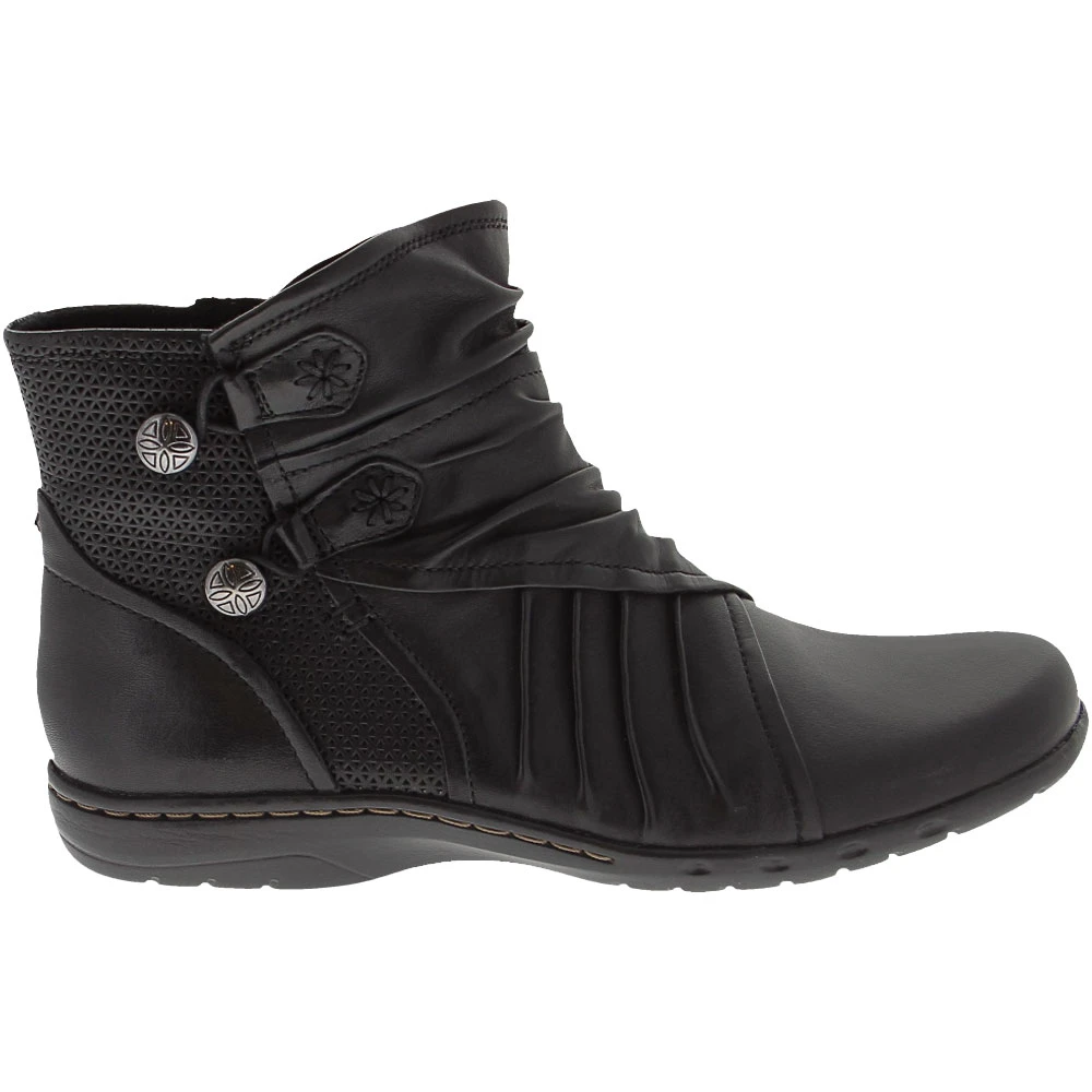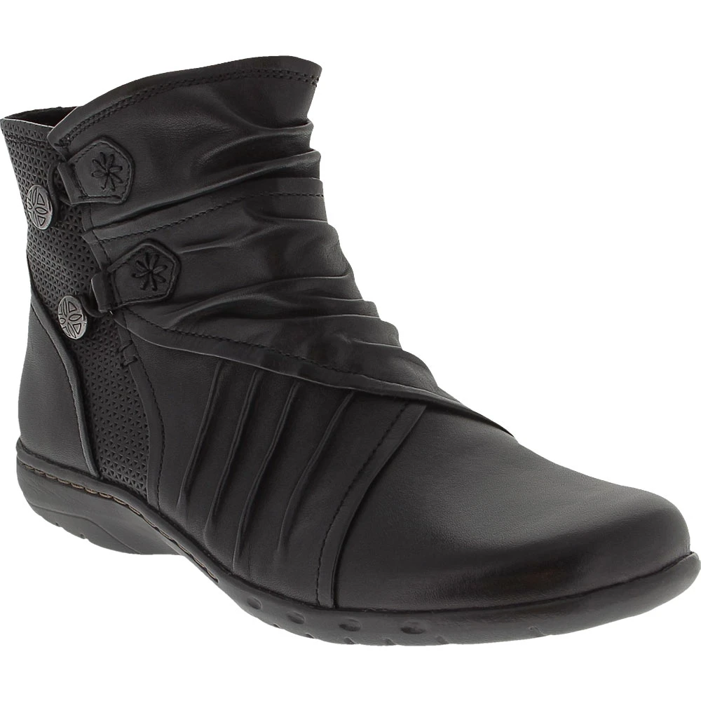 Cobb Hill Collection Penfield Bundie Bt Ankle Boots – Womens. Comfort and style collide to create the next go-to for womens ankle boots. These leather pull-on boots pair well with a pair of favorite jeans or dressier pants, making them ideal for everyday wear. They feature breathable perforations accented with floral stitching and metal bungee buttons. A flexible, cushioned footbed keeps feet comfortable and absorbs impact with every step while a comfort pod and steel shank enhance stability.