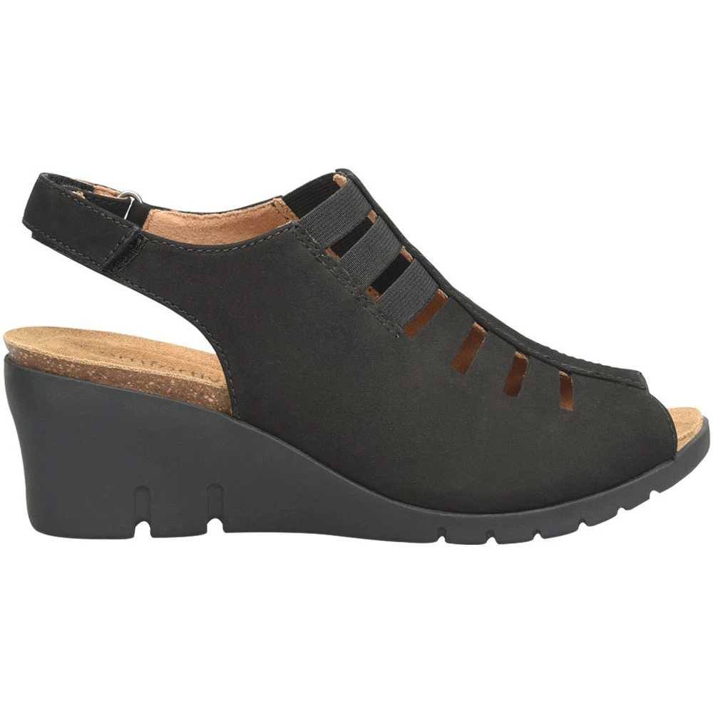 Welcome warm weather and show off your style in these womens casual shoes. Featuring peep toes and classy straps, they have a modern and trendy flair. The soft leather upper has an elastic gore for flexibility and an adjustable heel strap to get a personalized fit. These wedges have a memory foam footbed that is lined with breathable suede and a durable synthetic outsole that keeps up with your busy day and night.