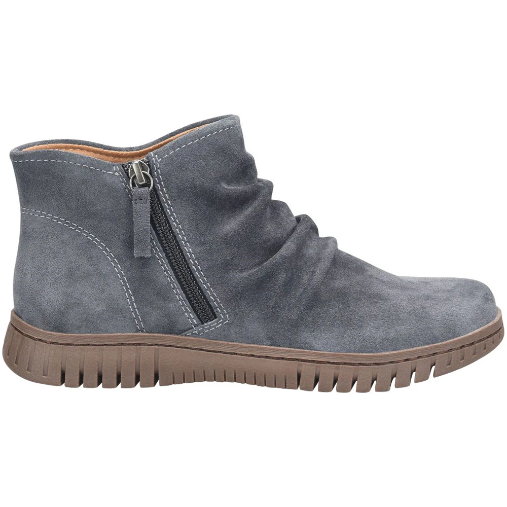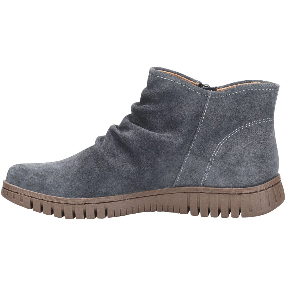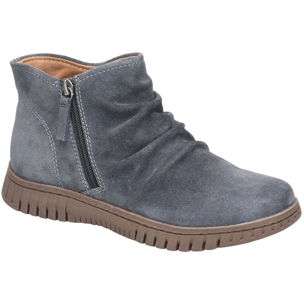 Take your style up a notch and show off your flair in a pair of these womens casual boots. Perfect for pairing with your favorite warm-weather ensemble, they pack a punch in comfort and flair. The upper is made with soft leather and features ruching, a side zipper, subtle stitching accents and a rounded toe. Designed for comfort, they have a memory foam footbed and microfiber lining to help feet breathe and stay cushioned. The durable outsole is slip-resistant and lightweight.
