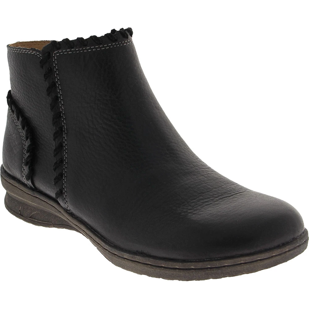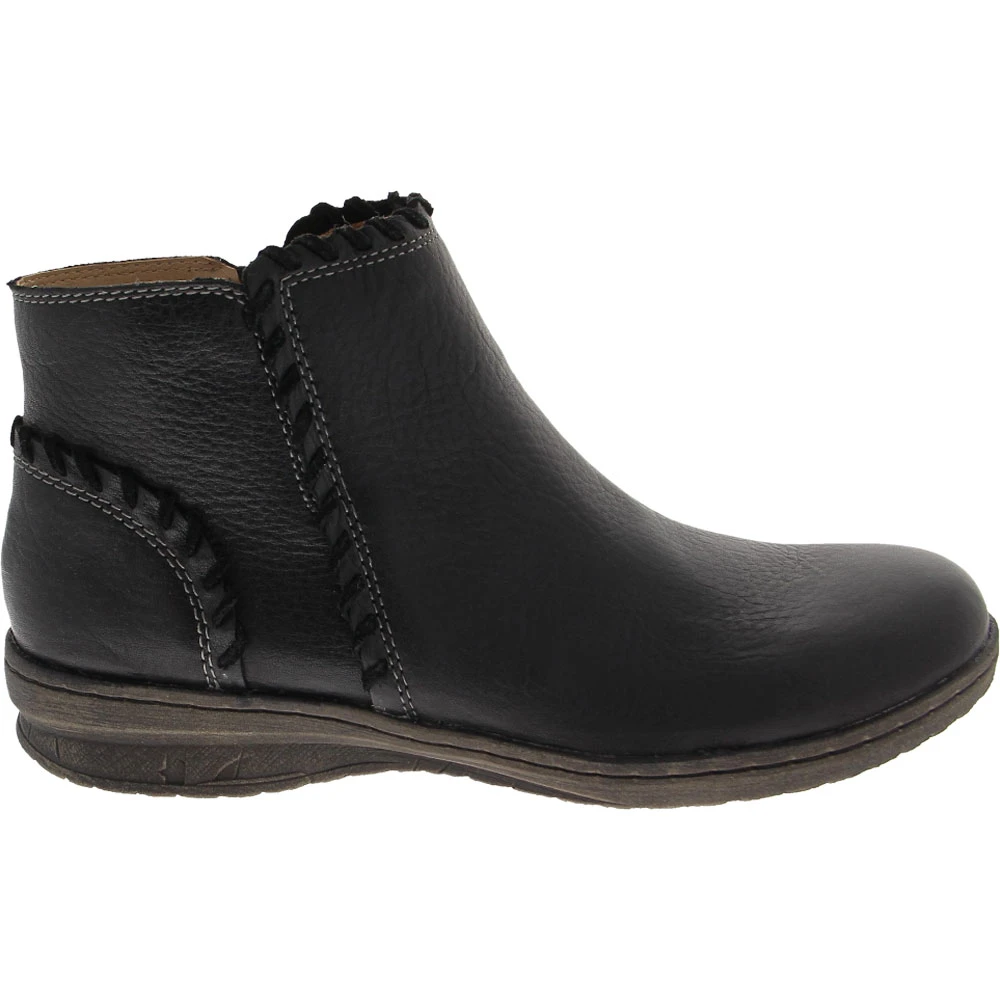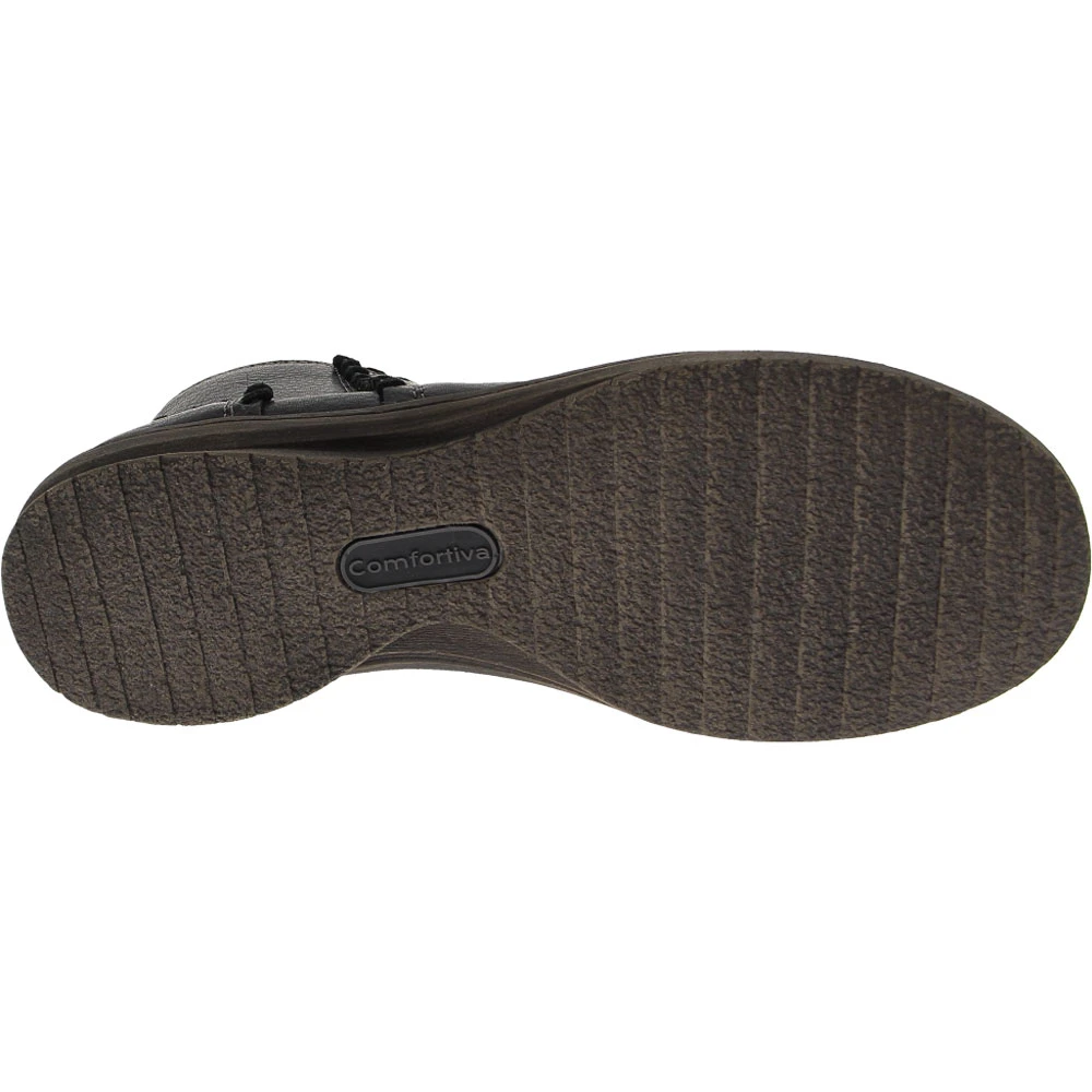 Comfortiva Fallston Casual Boots – Womens. Soft leather in a rich shade of brown is the base for the Fallston boots from Comfortiva. These ankle boots are set apart by the unique whipstitch detailing around the top, sides, and heel of the shoes. The wide suede stitching gives the leather a delicate, ruffled effect, which is a beautiful contrast to the Western-inspired silhouette. Your foot stays cushioned and supported with a memory foam footbed, textile lining, and a rubber outsole.
