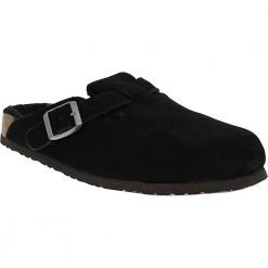 Earth Origins Johanna 2 Womens Slip on Casual Shoes. Even if the weather starts to cool, you can still exude style while staying warm in this womens slip on casual shoe. This clog has a genuine suede upper that is adorned with stitching accents and an elastic strap and button. Feet are kept cozy and comfortable thanks to a breathable fleece lining and removable cushioned footbed designed to support the arch. The durable outsole is made with recycled TPR and meets slip-resistant standards.
