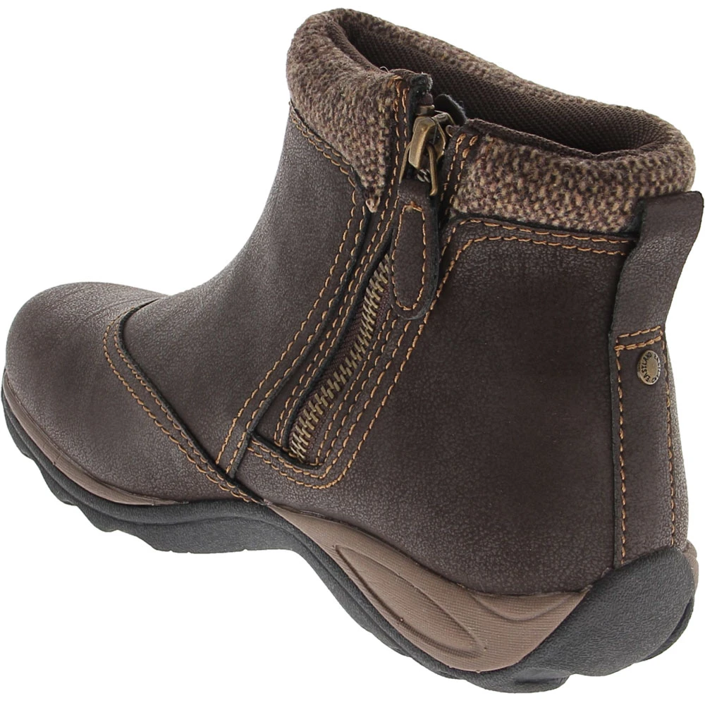 Eastland Bridget Women’s Casual Boots. Slip into casual comfort and stylish versatility when you go with Eastland’s Bridget Casual Boot. They are easy to get into and out of, thanks to side-positioned zippers. Breathable soft-touch lining protects with each step, while integrated Memory Foam insoles shape to your feet for true contoured support. Trust the TPR-built outsoles for quality grip and lasting durability on a variety of surfaces.