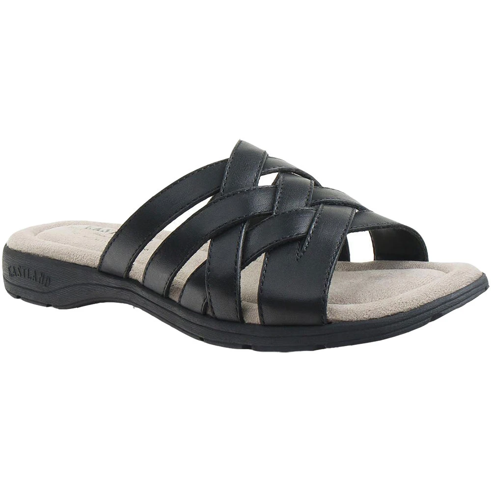 Eastland Hazel Slide Sandals for Women. The interwoven full grain leather straps on the top of the Eastland Hazel Slide Sandal will provide support and style all summer long. The comfortable insole is made of the Eastland exclusive Active Memory Foam. You can easily slip these sandals on and off thanks to the slide design, but you won’t slip on the ground thanks to the slip-resistant outsole.