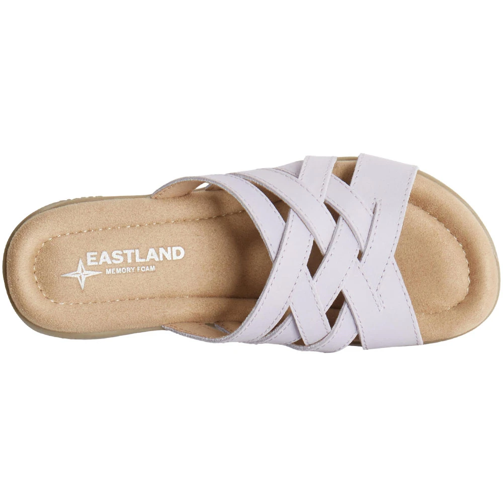 Eastland Hazel Slide Sandals for Women. The interwoven full grain leather straps on the top of the Eastland Hazel Slide Sandal will provide support and style all summer long. The comfortable insole is made of the Eastland exclusive Active Memory Foam. You can easily slip these sandals on and off thanks to the slide design, but you won’t slip on the ground thanks to the slip-resistant outsole.