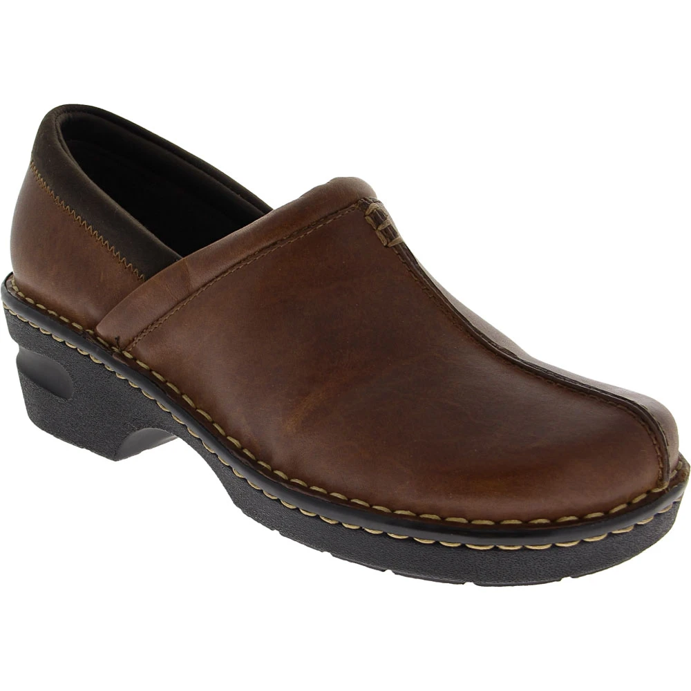 Eastland Kelsey Clog Casual Shoes. Step into the simplicity of lasting comfort and classic style with the Eastland Kelsey clog for women. Full grain leather upper with bold contrast stitching. Removable footbed absorbs shock to reduce fatigue and pressure. This shoe grips the ground with a lightweight polyurethane sole.