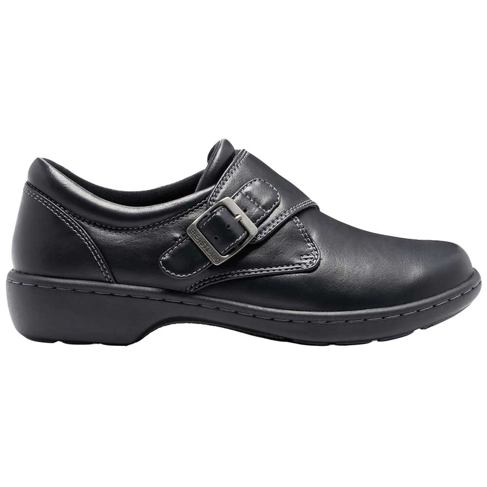 Eastland Sherri Women’s Slip on Casual Shoes. Add classic style to your wardrobe with these women’s casual shoes. A clog profile with a top strap and pewter buckle is ideal for dressing up or down. The durable synthetic upper resembles leather. These shoes have a polyurethane outsole designed to absorb shock with every step, and a comfort insole that conforms to the shape of your foot. A full fabric lining helps to keep your feet dry and comfortable every day.