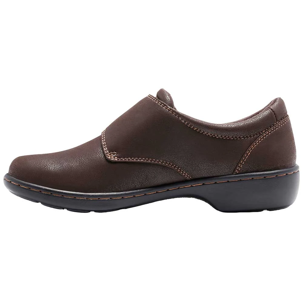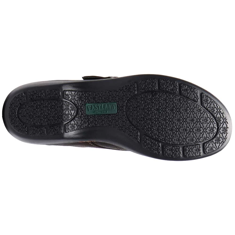 Eastland Sherri Women’s Slip on Casual Shoes. Add classic style to your wardrobe with these women’s casual shoes. A clog profile with a top strap and pewter buckle is ideal for dressing up or down. The durable synthetic upper resembles leather. These shoes have a polyurethane outsole designed to absorb shock with every step, and a comfort insole that conforms to the shape of your foot. A full fabric lining helps to keep your feet dry and comfortable every day.