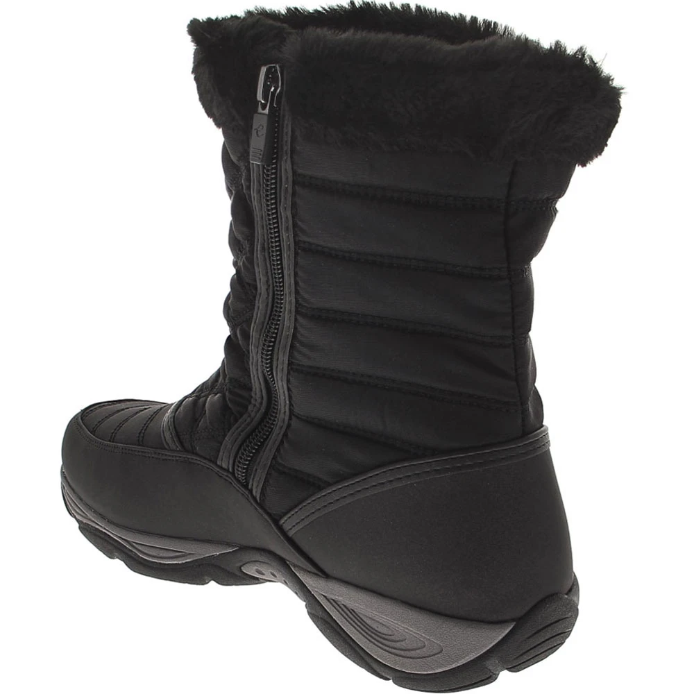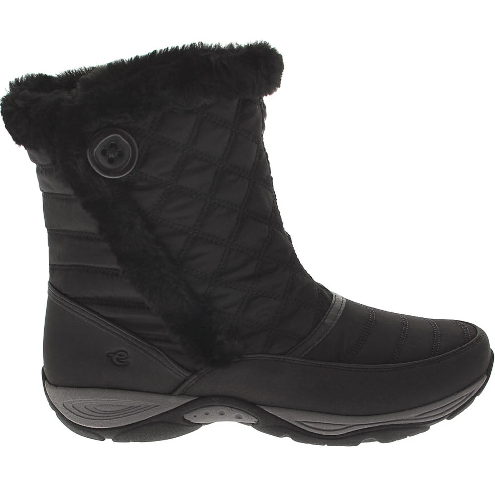 Easy Spirit Exposure 2 Comfort Winter Boots – Womens. Easy Spirit’s Exposure 2 womens winter boots are ready for the cold, offering the perfect blend of style and substance. Under their quilted faux fur-trimmed uppers, a fully gusseted tongue and water-resistant nylon prevent snow and moisture from reaching your feet. With each step, you enjoy cushioned comfort, arch support and shock absorption from their removable footbeds. Their molded rubber outsoles ensure you stay surefooted on multiple surfaces.