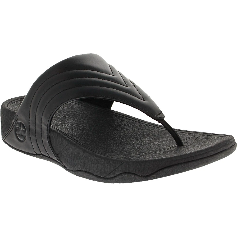 FitFlop WalkStar Leather Womens Flip Flop Sandals Black