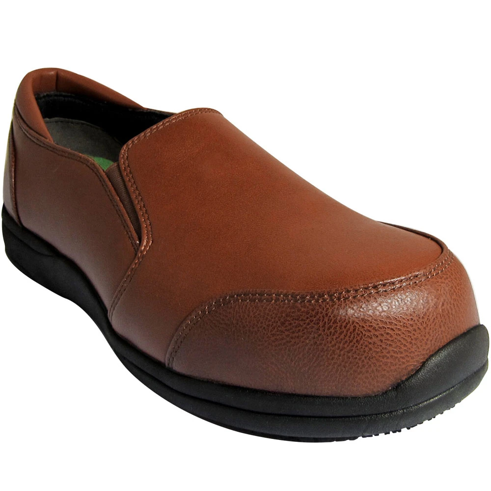 Genuine Grip 351 Composite Toe Work Shoes – Womens. Clunky, heavy womens composite toe work shoes are a thing of the past. Bring your footwear to the modern world while still staying protected with these stylish slip-ons. They have the certified composite toes you need and are versatile enough for wearing in the office. Featuring a sleek microfiber upper with slip elastic panels for flexible wear. Ultra-lightweight, they have a cushioned insole and foam midsole to keep steps light.