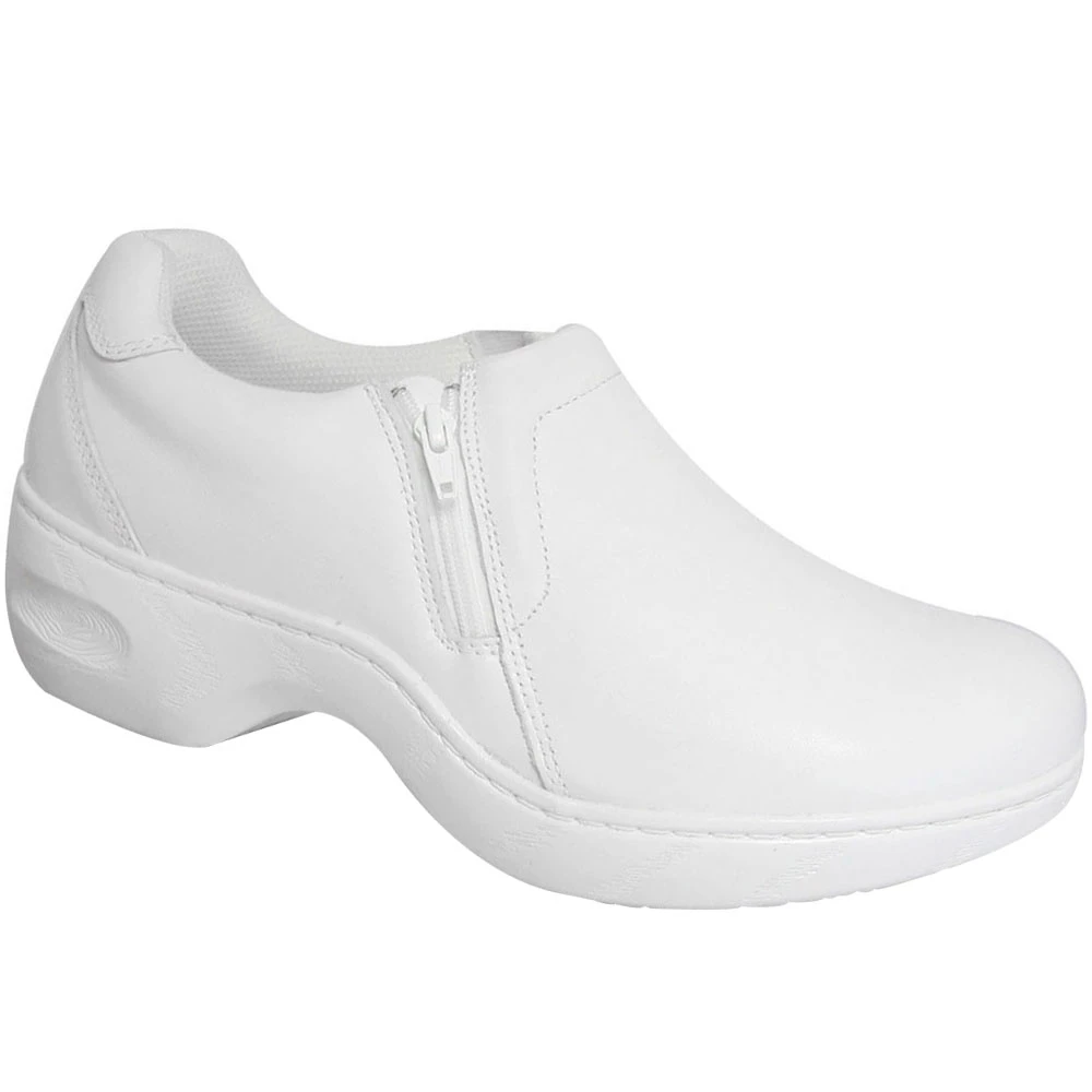 Genuine Grip 465 Women’s Slip Resistant Work Shoes. This pair of Genuine Grip 465 women’s work shoes has design features that will enable you to stay secure on your feet in wet conditions. You will feel like you are walking on air with its removable polyurethane insole. You’ll enjoy having the side zipper that will make it easy to put them on quickly and comfortably, and a shock absorbing polyurethane mid-sole to dampen your ride. This design is ideally suited for professionals who tend to stand all day on hard surfaces possibly with water or oil. It’s perfect for nurses, doctors, chefs, teachers, and retail store or restaurant employees.