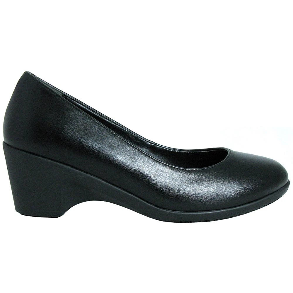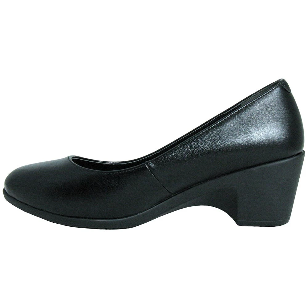 Genuine Grip 8400 Women’s Non-Safety Toe Work Shoes. Not all work shoes have to look like boots, take the Genuine Grip 8400 for women. This dress pump has an approximately 2 inch heel, a slip-resistant rubber outsole, a soft lamb skin full leather upper, a polyurethane midsole to keep this shoe lightweight and still supportive. You can work and still stay dressy and stylish.