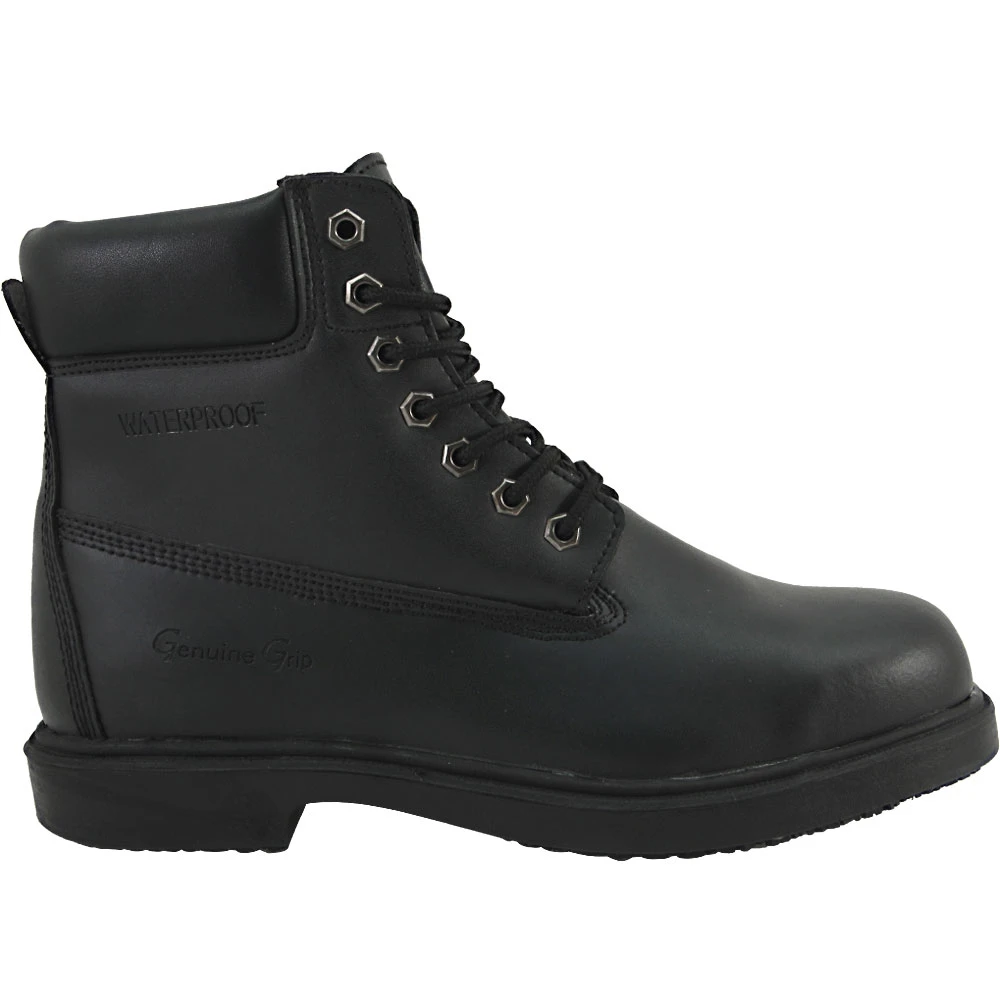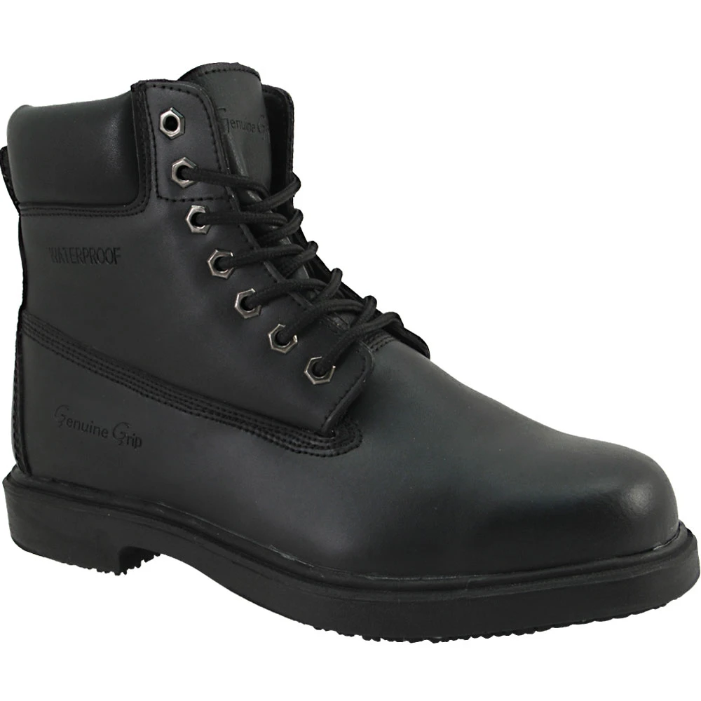 Genuine Grip Waterproof Hi Women’s Non-Safety Toe Work Boots. Protect your feet in a pair of Genuine Grip Waterproof Hi Women’s Non-Safety Toe Work Boots. The leather uppers are durable, the shock-absorbing PU midsoles keep you feeling good, the polyurethane insoles feel like clouds under your feet, et cetera et cetera. Long story short, these are good, quality, comfy, durable work shoes.