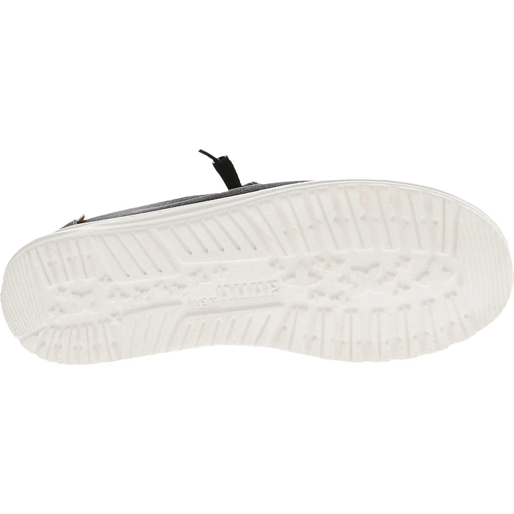 Hey Dude Wendy Chambray Womens Slip on Casual Shoes. With a wide fit, soft upper and lightweight outsole, the Wendy Chambray from Hey Dude is a great addition to your everyday wardrobe. These womens slip on lifestyle shoes are both fashionable and comfortable. Flex & Fold technology allows them to take up less space in your closet while providing flexible movement. Stay comfortable all day long with a cushioning memory-foam insole. Be ready to go in no time with the convenient slip-on design.