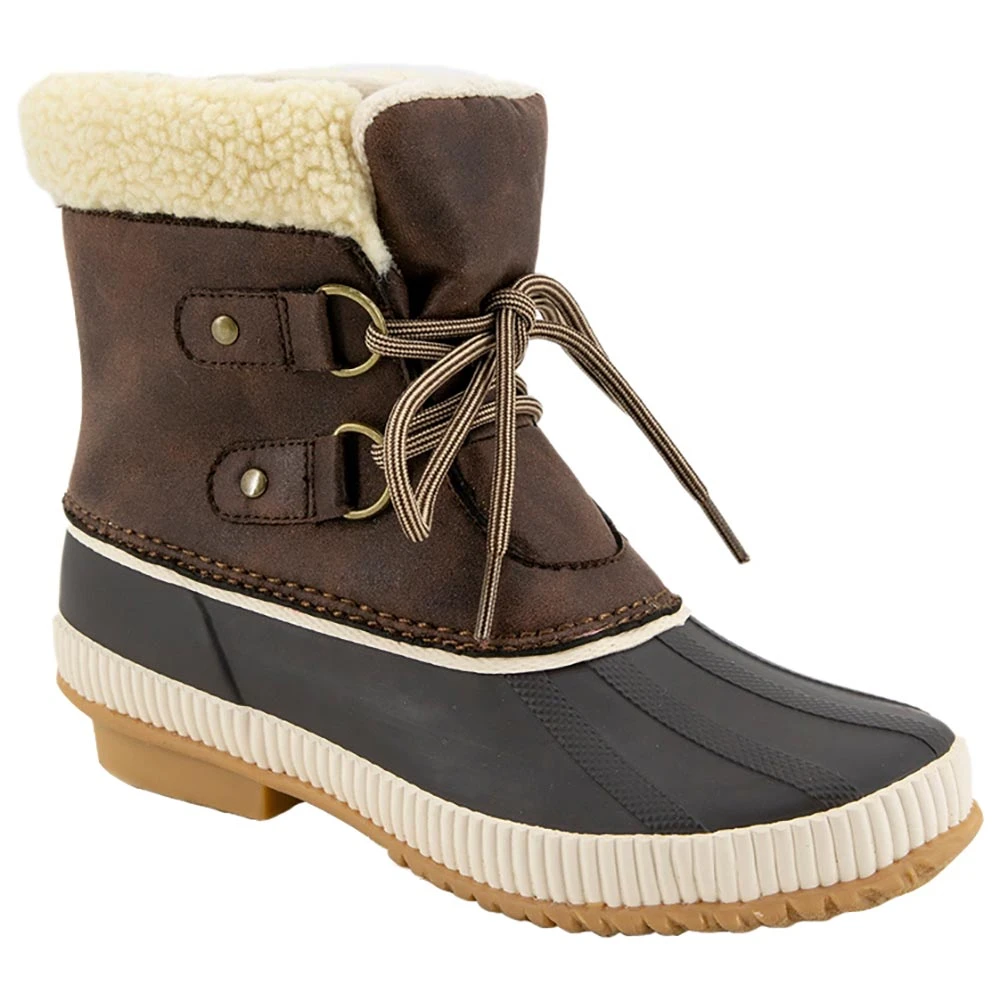 JBU by Jambu Akron Women’s Winter Boots. Having to be outside in cold, wet conditions is never fun, let alone getting cold or having cold feet. The Akron winter boot for women’s helps solve those issues. You can walk confidently through those cold, wet, rainy conditions thanks to the faux fur lining to keep you warm, the duck boot rubber foot to keep you dry, removable comfortable insoles to keep you comfortable and a rubber traction outsole to keep you sure footed.