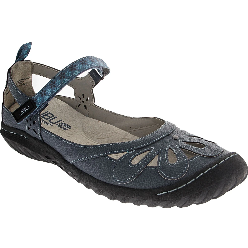 JBU Wildflower Encore Casual Shoes – Womens. The Wildflower Encore from JBU is a combination of cute and comfy, making it a great choice for daily wear. These womens casual shoes feature a floral cutout that will add a stylish touch to any outfit. The memory foam footbed provides cushioning to keep you comfortable while the rubber outsole provides non-slip traction. With the hook and loop closure, you can adjust the fit, so they feel snug and secure without uncomfortable tightness.